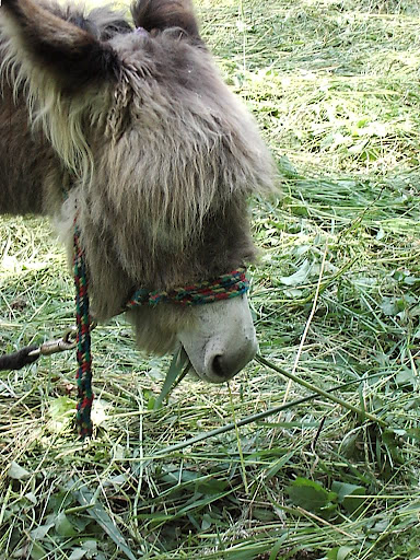 Eine Frau, hinter dem Teich, hatte Angst, dass Sultan zu ihr kommen könnte und motzte ein wenig rum, doch ich konnte sie beruhigen. Sultan nutzt die Pausen lieber zum ruhen und nicht um stiften zu gehen. Danach weiter, wo ich wieder Probleme hatte die Esel über die kleine Brücke zu bekommen und dann doch den Umweg gehen musste, weil es vorn an der Schnellstraße eine größere Brücke gab, die sie nun auch bewältigten.