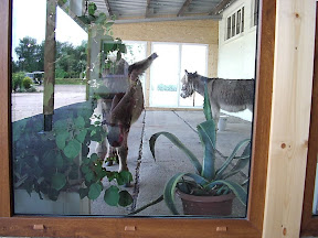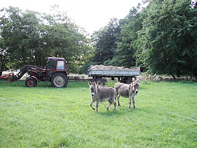 Ich erzählte von der Familie am Biberhof, dass sie mich zu ihnen empfohlen hatten und bat darum eine Nacht bei ihnen bleiben zu können. Die Esel hatten sich derweil in den jungen Bäumen vorm Tor versteckt, um nicht nass zu werden. Es dauerte eine Weile und dann wurden wir tatsächlich eingelassen. Wieder war ich erleichtert und froh über solch einen glücklichen Umstand, gerade zum Regenbeginn aufgenommen zu werden. Der Regen war nicht so heftig wie am Abend zuvor. Gaby, die Hausherrin, hatte bei Claudia angerufen und sich erkundigt, ob das stimmt, was ich erzählt hatte. Und als sie von ihr erfahren hatte, dass ich in Ordnung bin, ließen sie uns ein. Vielsten Dank.