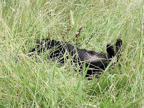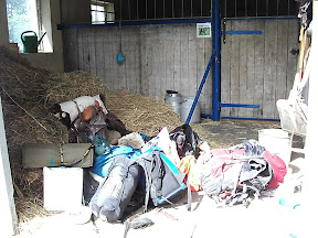 Nun, die Esel kamen zu den Schafen, die Stall und großen Auslauf hatten. Und ich konnte mein Gepäck und Schlafraum in ihren Hobbyraum beziehen. Sie hatten die Befürchtung, dass ihr alter Hund Tabs mit Sultan ein Problem hätte, doch wie sich später herausstellte kamen beide miteinander gut aus. Alle Tiere bekamen Futter und auch ich bekam noch schön warmes Kräuterbaguette. Gaby war derzeit krank und zu Hause, auch ihre Tochter Sandra war gerade zu hause, eigentlich arbeitet sie in Österreich. Spät am Abend kam noch ihr Sohn, dessen Namen ich leider vergessen, obgleich wir uns sehr sympathisch waren und sehr gut verstanden. Wir konnten gut miteinander witzeln. Nun ja, so lernten wir uns kurz kennen und ich fiel gegen 23 Uhr todmüde ins Bett und schlief angenehm. Tabs schlief mit bei uns im Hobbyraum.