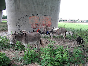 Ich schrieb ein wenig Tagebuch und gedachte am liebsten hier zu bleiben, da ich mich so was von müde und kalt fühlte. Doch so gemütlich war der Ort nun auch nicht, vor allem nicht sehr geschützt. So besann ich mich auf die Worte des Mannes und entschloss mich bei den Punkern zu fragen. Ich blieb zwei bis drei Stunden an dem Platz bis ich weiter ging. Und als wir so wieder im laufen waren, dachte ich dass ich jetzt auch noch bis nach Beilrode gehen konnte, der der vorgeschlagen Familie, die uns eventuell aufnehmen könnte für eine Nacht. Die Esel waren auch wieder ausgeruht und gesättigt und so liefen wir erstmal auf dem Fahrradweg an der B 87 entlang, die ab jetzt meine Leitlinie nach Eisenhüttenstadt sein würde. Doch nur da wollte ich nicht lang gehen, da dies nun nicht so romantisch und ruhig ist. So bog ich südlich nach Kreischau ab, durchquerte es, sah mich hier doch nach Übernachtungsmöglichkeiten um, fand nichts passendes und ging weiter auf Beilrode zu.