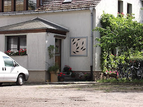 Die Familie war arbeiten und nicht zu hause. Nach dem Frühstück konnte ich mit einem alten Fahrrad von ihnen ins Kaufland fahren, um mir Tabak zu besorgen. Sie hatten mir angeraten mit den Tieren nicht durch die Stadt zu gehen, sondern außen herum an der Elbe entlang. Ich freute mich schon darauf die Elbe zu sehen, da sie schon immer mein zu Hause verkörperte, in Pirna wo ich aufgewachsen bin und in Dresden, wo ich meine Jugend verbrachte und ich später aus der Stadt floh mit dieser Reise, weil meine Sehnsucht nach Natur und Ruhe zu stark geworden sind. Das Fahrrad war eine Messe, ich bin froh, dass es unterwegs nicht in seinen Einzelteile zerfallen ist, denn es klapperte und eierte beim fahren sehr stark. - Wir kamen heil wieder zurück. Auf dem Biberhof sitzt ebenfalls ein Naturschutzzentrum – Nabu - , die gerade eine Schulklasse da hatten.