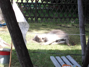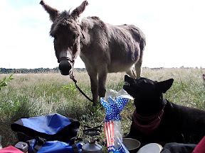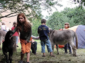 Bei ihr war ein großes Fest, viele alte Schulfreunde kamen mit ihren Familien, um dort zusammen zu kommen und zu feiern. Sie gab mir frisches Wasser und zwei Stücken Kuchen. Ja, Kuchen esse ich so gerne und so selten seid ich unterwegs bin, deshalb verharrte ich noch eine Weile und als ich weiter gehen wollte kamen gerade alle vom Fußball spielen zurück. Kinder, Mütter, Väter liefen freudig zur Nr.13 und als sie uns sahen umringten uns die Kinder und auch einige der Erwachsen, um mir viele Fragen zu stellen. Julianne lud uns kurzerhand ein bei ihnen die Nacht zu verbringen und ein wenig mitzufeiern. Die Kinder jubelten und ich konnte kaum "Nein" sagen, obgleich ich zu Vollmond lieber allein gewesen wäre. So ging ich wider mit rein, suchte uns ein Fleckchen für unser Lager. Es standen schon einige Zelte und Wagen auf dem Gelände, doch ich fand ein Plätzchen für uns alle. Die Kinder ließen uns nicht allein und ich brauchte so ewig mit aufbauen des Lagers. Sie bürsteten die Esel und einige besorgten sogar Heu von einem benachbarten Bauern. Ja, herrlich, wie sich die Kinder kümmerten. Sie hatten lange zum Heu holen gebraucht, wo sich schon die Eltern Sorgen machten. Wir gingen sie suchen und sie kamen uns freudestrahlend mit einem Sack Heu entgegen.