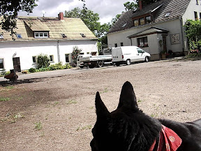 Ich freute mich auf ihn und wusste, dass nach dem Dorf grünes Land kommen würde, wo ich schon einen Platz für uns finde. Doch ich hatte unsere eben aufgefüllten Wasservorräte in der Pause sehr verbraucht, dass ich nochmal hier nachfragen wollte, um sie wieder aufzufüllen. Ich kam aber eben an keinem offenem Hof vorbei, doch wirkte die Nr.13 etwas alternativer, obgleich er auch verschlossen war. Wir zogen daran vorüber und da kam mir eine junge Frau entgegen, die mich ansprach. Sie fragte ich sogleich nach Wasser, nach dem ich ihr kurz einige Fragen beantwortet hatte. Sie nahm mich mit, in die Nr. 13. Aha, wieder dieses Zahl ...
