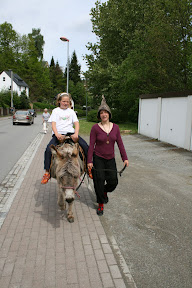 Angelika wohnt ein Dorf weiter, so ca.5km entfernt und das war ein schöner Sonntagsausflug zu ihr. An einer kleinen Brücke hatten wir das berühmte Eselproblem, dass sie auf keinen Fall darüber gehen wollen. Da war auch überhaupt nichts zu machen, Christine hat sich kaputt gelacht und unter Lachen habe ich es auch nicht geschafft die Esel davon zu überzeugen über die Brücke zu gehen. Naja, es ging ein Weg am Feldrand entlang und dann eben an der Straße bis wir bei ihr waren.