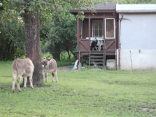 Bianca kam mit ihren zwei Kindern, um uns zu begrüßen. Beide Frauen waren sehr freundlich, offen und herzlich. Bianca ging nochmal fix nach Hause, um Essen zu holen für das Abendbrot. Die Esel erfreuten sich daran mal wieder ohne Leine sein zu können, wälzten sich vergnügt, rannten, tranken und fraßen. Die Kinder erfreuten sich an ihnen.