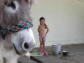 Ich erzählte von der Familie am Biberhof, dass sie mich zu ihnen empfohlen hatten und bat darum eine Nacht bei ihnen bleiben zu können. Die Esel hatten sich derweil in den jungen Bäumen vorm Tor versteckt, um nicht nass zu werden. Es dauerte eine Weile und dann wurden wir tatsächlich eingelassen. Wieder war ich erleichtert und froh über solch einen glücklichen Umstand, gerade zum Regenbeginn aufgenommen zu werden. Der Regen war nicht so heftig wie am Abend zuvor. Gaby, die Hausherrin, hatte bei Claudia angerufen und sich erkundigt, ob das stimmt, was ich erzählt hatte. Und als sie von ihr erfahren hatte, dass ich in Ordnung bin, ließen sie uns ein. Vielsten Dank.